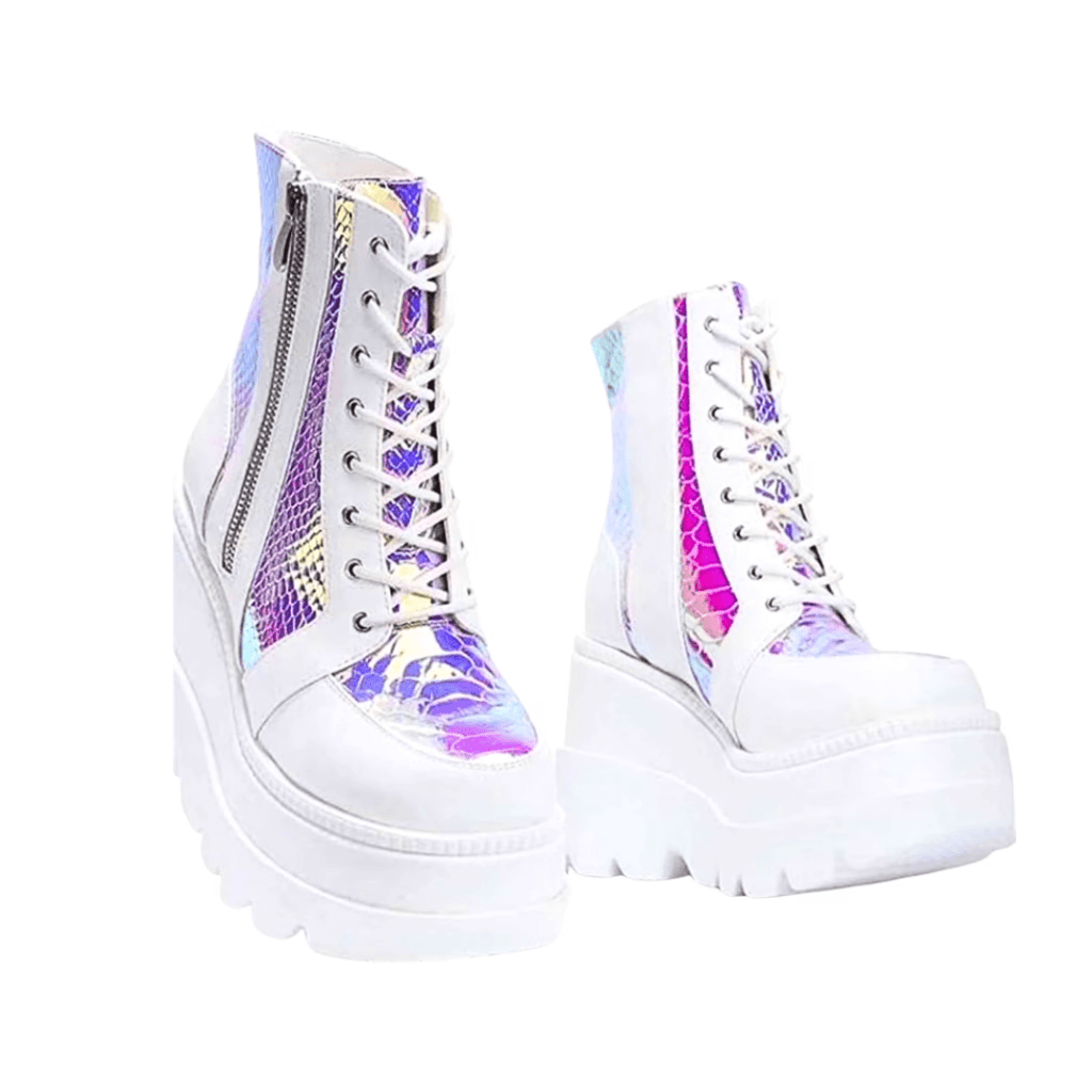 Shop secondhand rave shoes and festival footwear to dance your heart out without harming the planet. Platform boots, chunky sneakers, and statement shoes that have already been broken in, meaning you skip the blisters the waste. Buying pre-loved means you save money while keeping durable footwear out of the landfill.