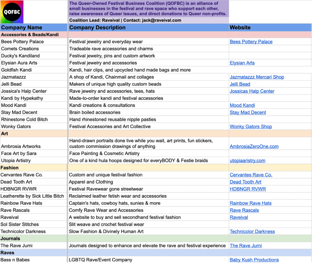 The Queer Owned Festival Business Directory is your one-stop-shop for finding and supporting small, Queer-owned 🌈businesses in the festival and rave space.